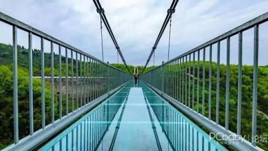 層樓高,集玻璃碎裂、吞云吐霧、玫瑰廊橋等20 余種絢麗特效,擁有聲光控為一體的7D特效裝置 形容的就是中國(guó)首家恐龍水晶玻璃橋——客天 下恐龍水晶玻璃橋。游客在橋上俯瞰遠(yuǎn)望,四面風(fēng)  景如畫(huà),美景盡收眼底,一不小心觸碰到“神秘機(jī)關(guān)”,玻璃會(huì)瞬間“炸裂”,能體驗(yàn)意想不到的緊